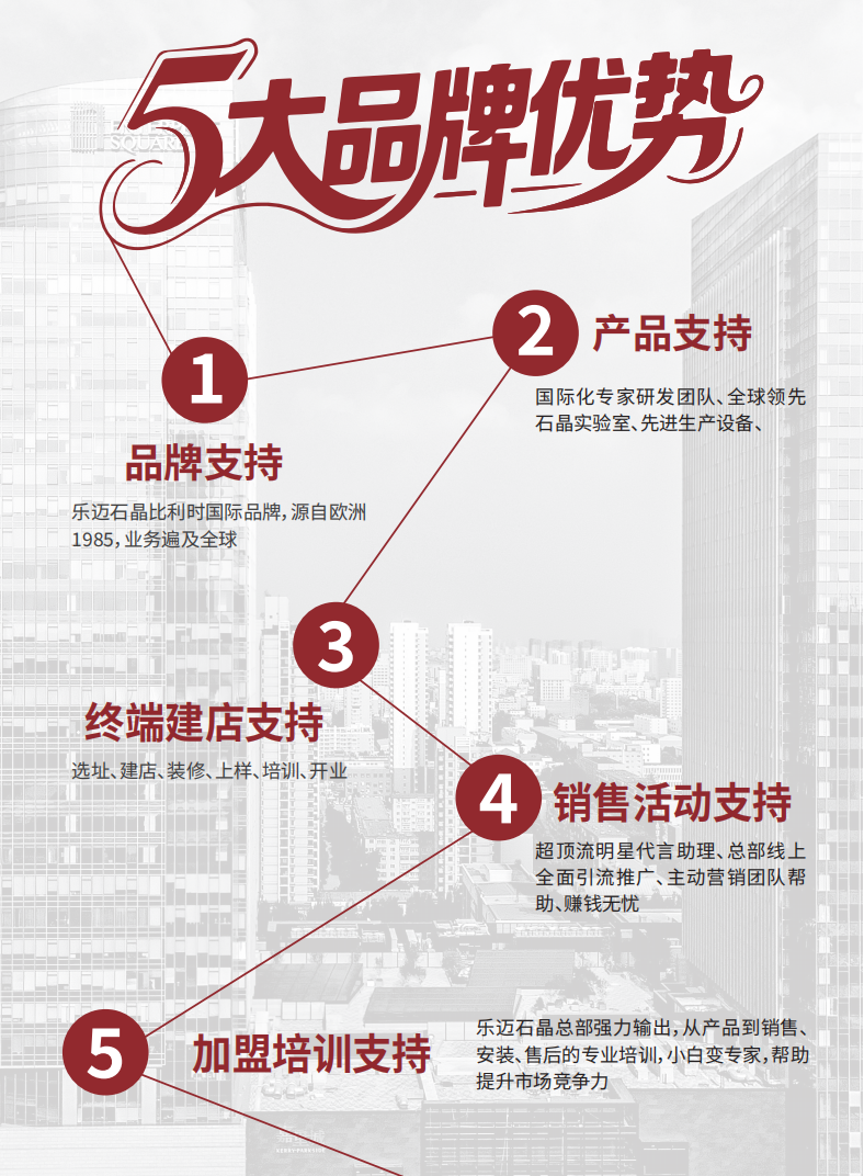 除了灵活“轻投入、高回报”招商政策,Lamett乐迈石晶还凭借强大的品牌、产品、供应链及运营体系,为经销商加快资金周转、快速盈利提供坚实支撑。