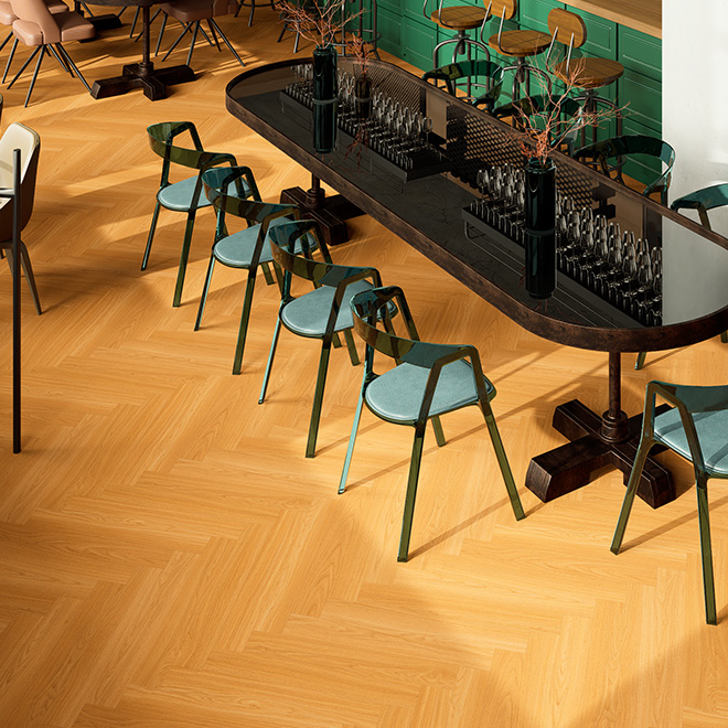 老木梁上缓缓流淌的焦糖色树脂,带着烟火与蜜糖交织的香气。设计师以低明度的焦糖棕为底,融入丝丝金线,为现代空间注入令人安心的烟火气,甜而不腻,暖而不灼。