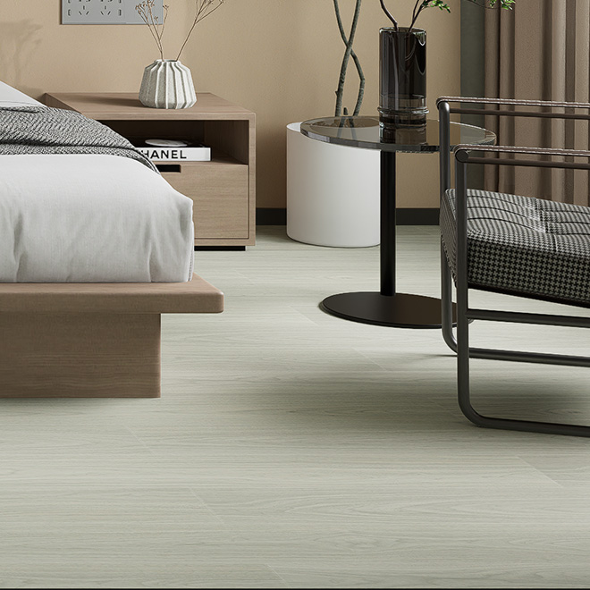 北欧针叶林的初霜,在夜里悄悄镀上一层薄银。霜地把这份清冽的冷光凝进木纹,灰底中泛出微微冰蓝,让盛夏也能听见雪落的声音,为空间带来透彻的呼吸感。