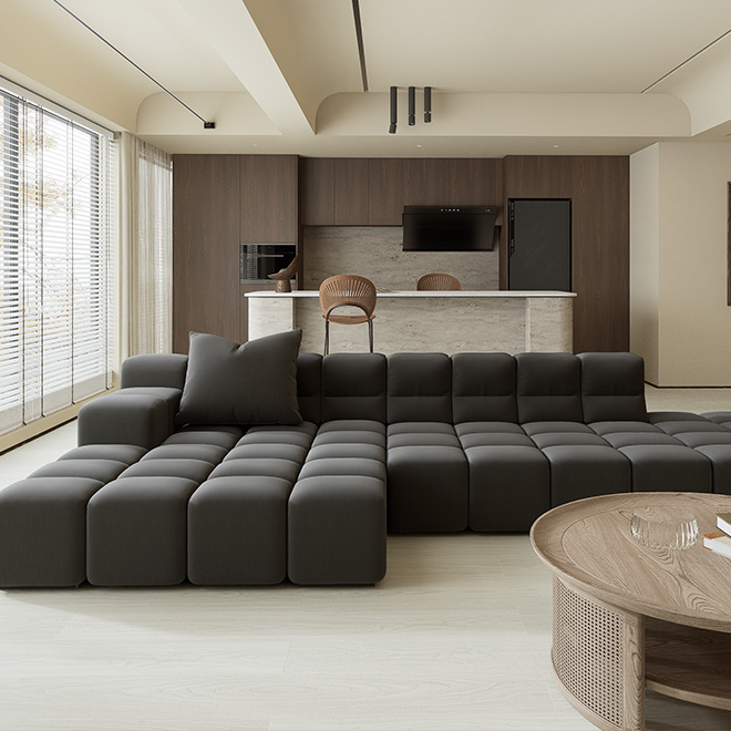 Morning mist in the valley — from afar, a cloud; up close, a fog. Mist Grey borrows the "negative space" of traditional painting, using subtle gray tones to carve a dreamlike gap between walls and floors, where thoughts can drift freely.