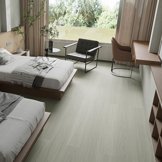 北欧针叶林的初霜,在夜里悄悄镀上一层薄银。霜地把这份清冽的冷光凝进木纹,灰底中泛出微微冰蓝,让盛夏也能听见雪落的声音,为空间带来透彻的呼吸感。