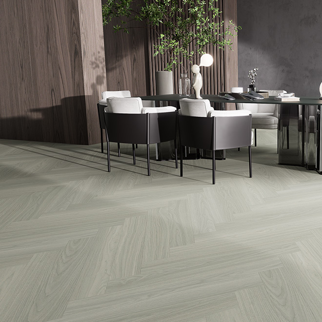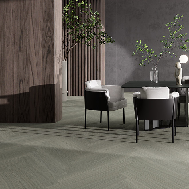 北欧针叶林的初霜,在夜里悄悄镀上一层薄银。霜地把这份清冽的冷光凝进木纹,灰底中泛出微微冰蓝,让盛夏也能听见雪落的声音,为空间带来透彻的呼吸感。
